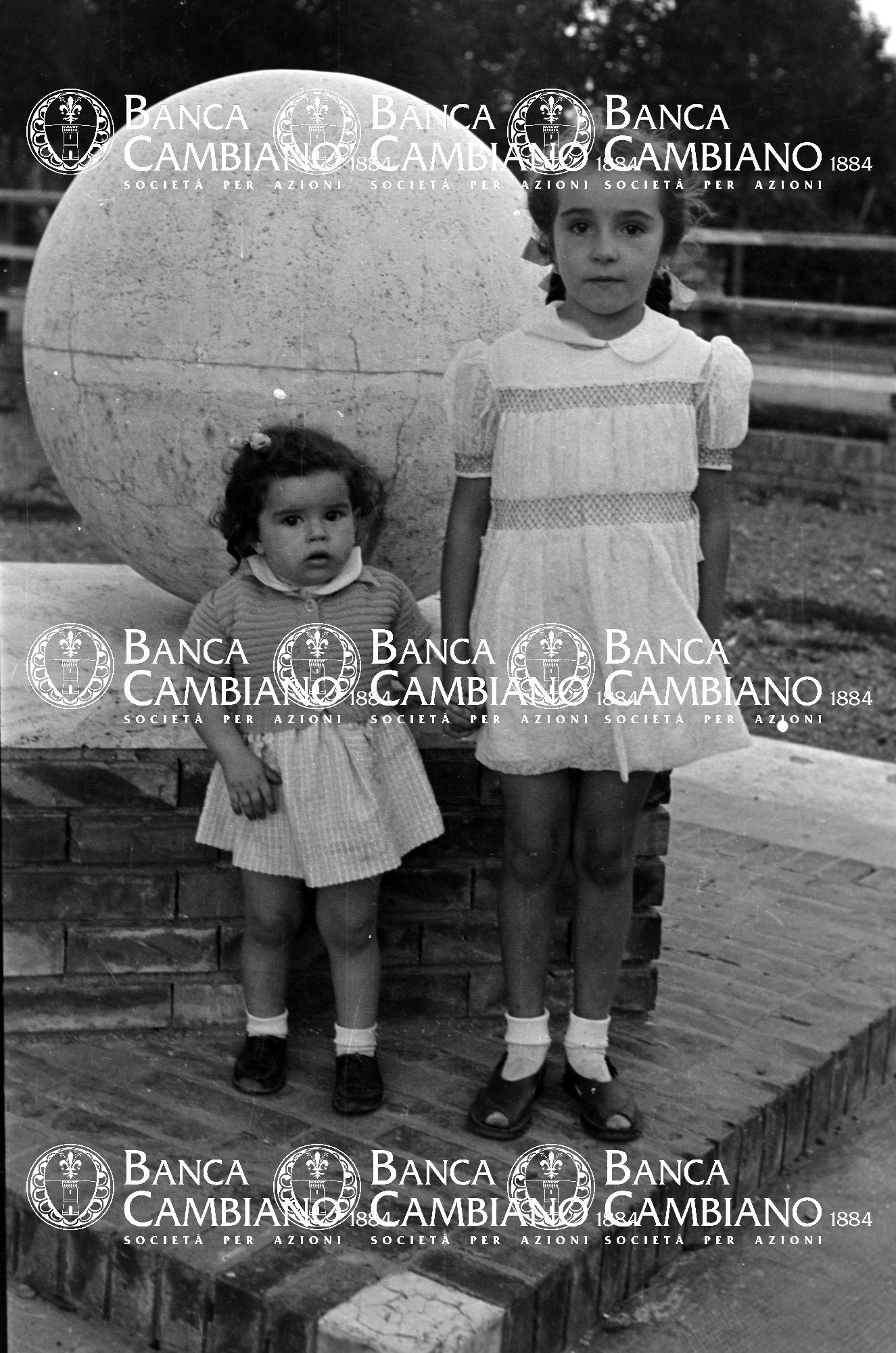 Ritratto di bambine vicino all'edificio della G.I.L.