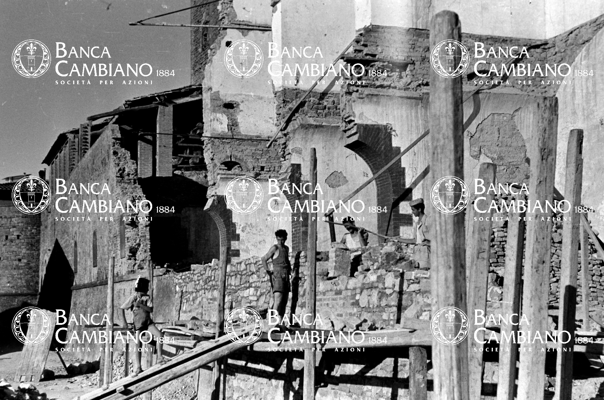 Distruzione a Castelfalfi: Persone vicino alle Macerie