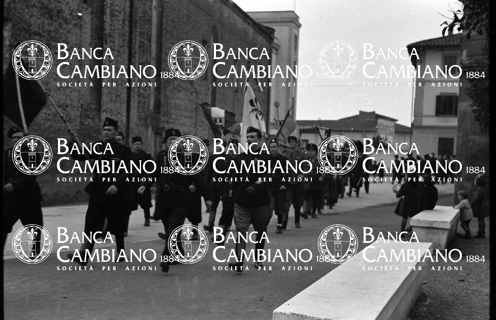 - Sfilata di gerarchi e fascisti in divisa, di lato alla Chiesa di S. Francesco, con gonfalone