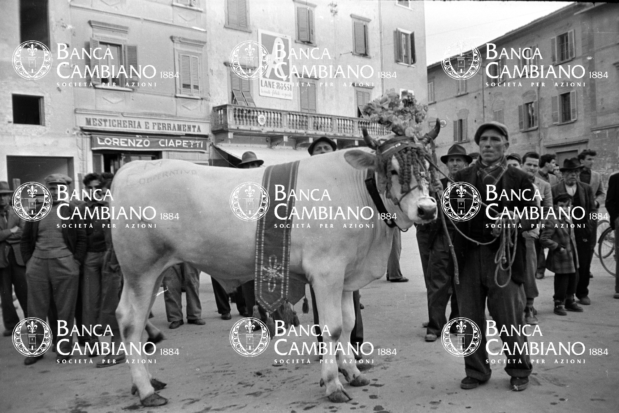 ritratto di uomo con bove in piazza Cavour
