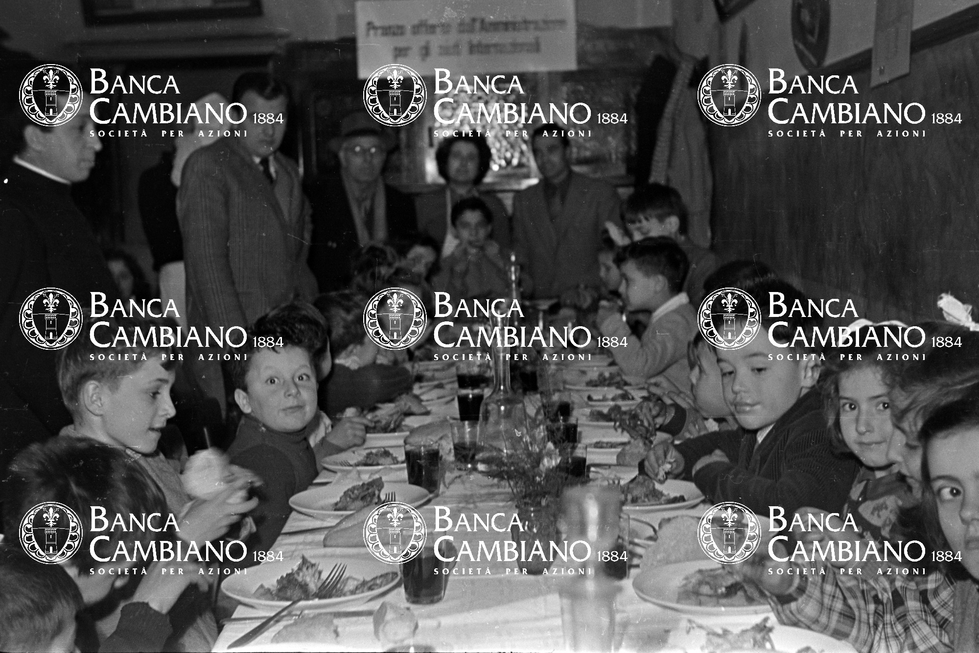 - Pranzo offerto dall'amministrazione per gli aiuti internazionali: bambini a tavola