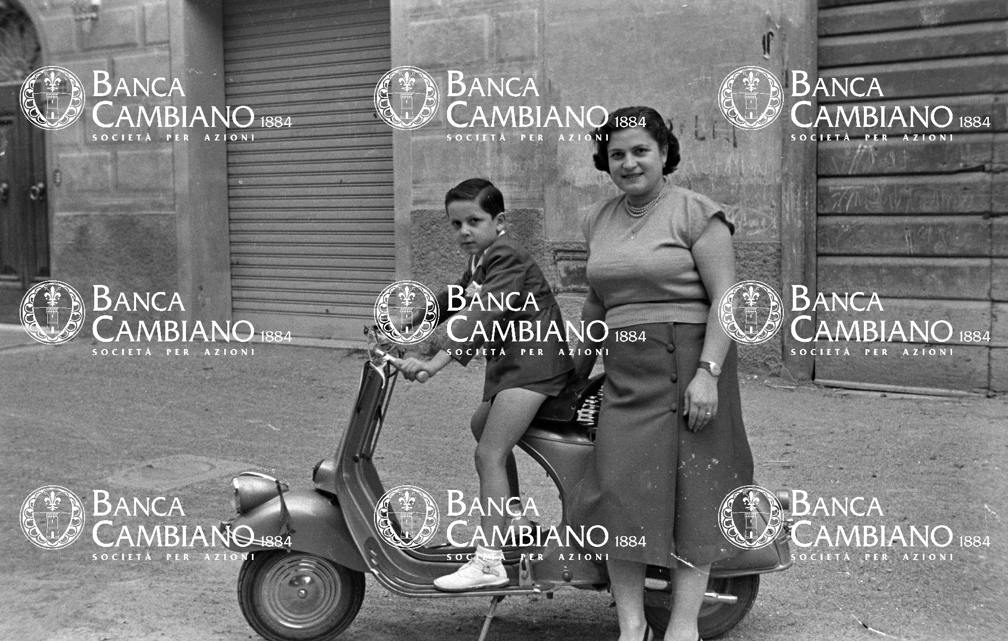 ritratto di bambino (Jaurès Valdeschi) e donna (Ines Zingoni) su Vespa