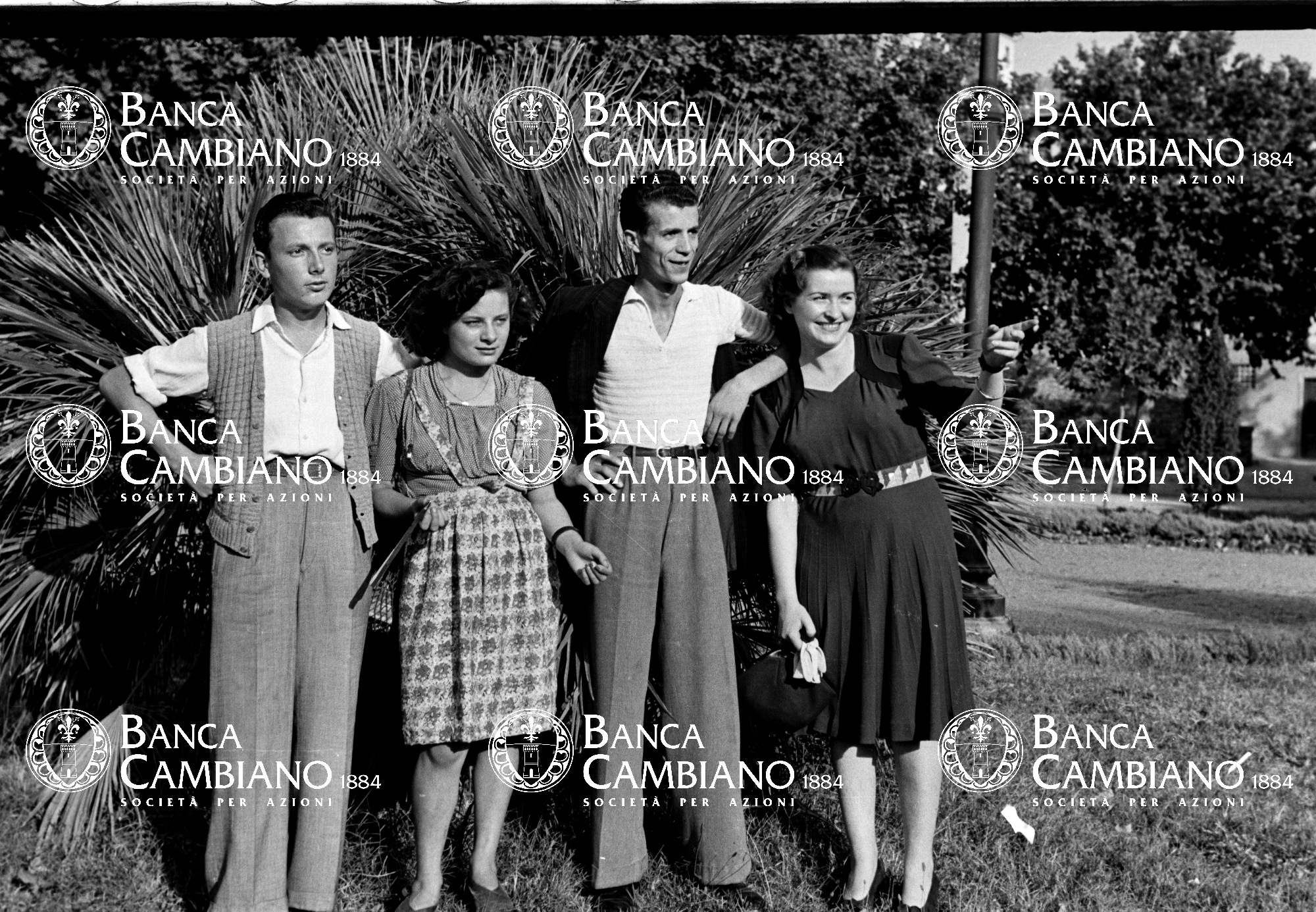 ritratto di uomini con donne ai giardini pubblici in piazza Gramsci giĆ  piazza marconi