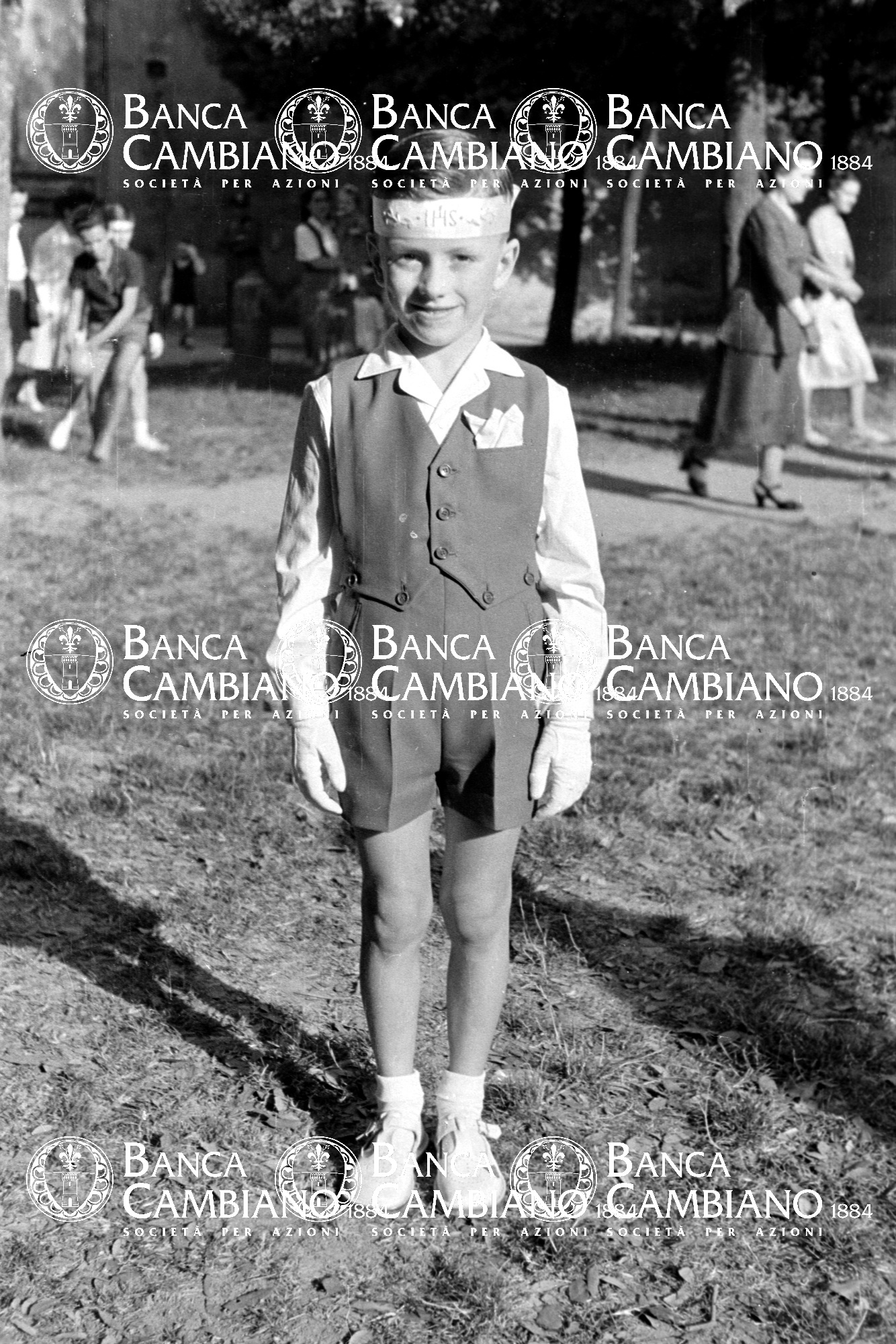 - Ritratto di bambino vestito da cresima nei giardini pubblici vicino alla scuola elementare M.Tilli
