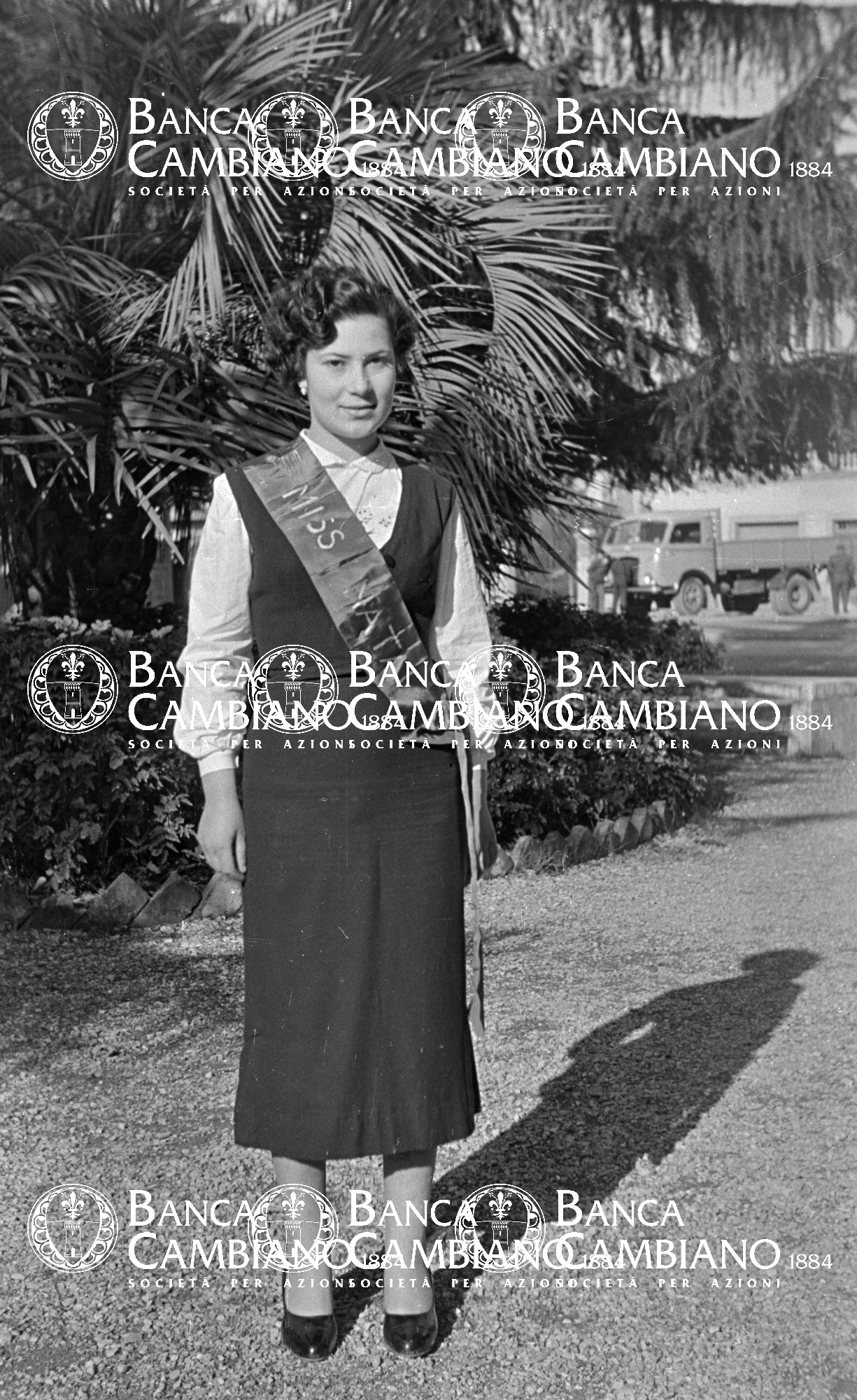- ritratto di Miss Natale nei giardini pubblici vicino piazza Marconi oggi piazza Kennedy