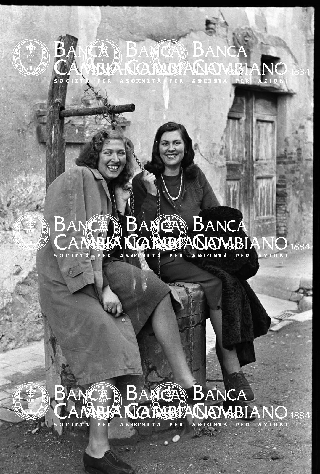 Due donne (Liliana Bianchi) sedute sul bordo di un pozzo durante la festa a Petrazzi